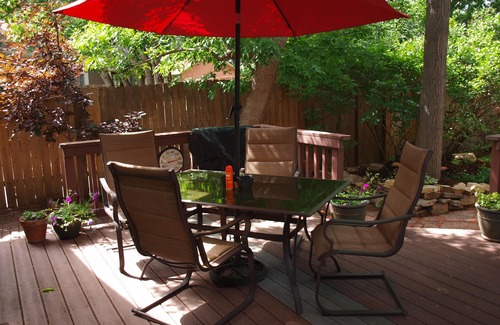 Outdoor: large shaded deck, fenced shady back yard. Close to old town, Colorado State University, and City Park. (City of FTC STR License # 00134707STR)