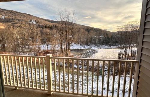Clean and cozy Studio hotel resort condo sleeps 4. Seated at the base of Loon Mountain’s South Peak, in New Hampshire`s gorgeous White Mountains. Relax on our balcony overlooking Loon and the Pemi River! Enjoy nature, hiking and lovely mountain scenery! Great area dining, and outdoor activities. Indoor pool and Jacuzzi are open and located in our facility. Great restaurants within walking distance. Free shuttle bus service to Loon Lift gate. Pemigewasset River in back