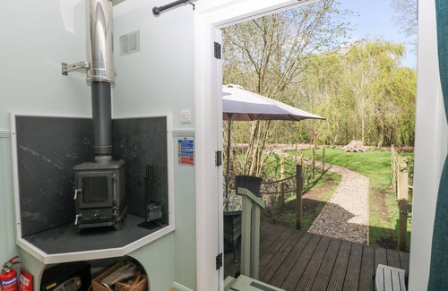 Damsel Shepherds Hut has a studio-style layout with a double cabin bed, kitchen equipped with a hob, microwave, fridge with ice box, kettle and toaster, a dining area and sitting area with woodburning stove and TV. There's a shower room with a walk-in shower, basin, heated towel rail and WC. Electric heating, WiFi, fuel, power and starter pack for woodburning stove, bed linen and towels are included in the rent. Outside there's a public car park and a non-enclosed garden with lawned area, patio, hot tub, barbecue, fire pit, furniture and sauna. Sorry, no pets and no smoking. Nearest shop 0.5 and pub in 0.5 miles, lake in 0.1 miles. Damsel Shepherds Hut makes a perfect romantic escape. Note: There are steps up to the property. Note: Check-in is from 4pm, check-out by 10am. The change over days are strictly Monday and Friday. Note: Last minute change of date requests will not be accepted.