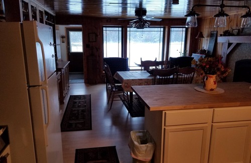 Spectacular view at the bend in the Peshtigo river. Large inviting kitchen and living rooms with full view of the river from any spot in the cottage. See through gas fireplace from living room to dining room for great ambiance Deck, gazebo and fire pit all facing the river. Quite location with close access to golf courses, hiking, dining, water falls and the full up-north experience only an hour north of Green Bay, WI