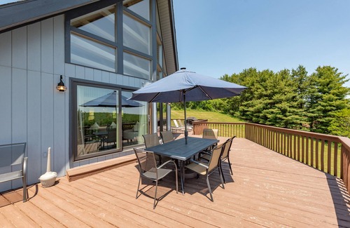 Enjoy all the views from the wrap deck at Moonlight View; Soak in the sun, relax in the hot tub, or snack on some s’mores around the fire. Gather in the living room as the sun pours through the floor to ceiling windows as you plan our your day on and around the lake. Head down to the community lake access for a dip in the lake or a picnic by the water. Venture into town to enjoy an amazing lunch or dinner at one of the local favorite restaurants then take a stroll through the State Park as the sun flickers between the trees. Come together in the lower den for a relaxing evening on the sectional or around the pool table as the large stone fireplace flickers in the background. The bubbles of the hot tub will be calling your name after a long day running around the lake in the summer or tearing it up on the slopes in the winter. Located in the Paradise Ridge community, Moonlight View is located just a short drive away from all the action Deep Creek Lake has to offer. When all is said and done and the day has come to the end, step out onto the deck to enjoy the moon and the stars scattered across the sky before going in and drifting off to sleep. Perfect views await on the deck of Moonlight View. Book your stay today!