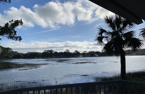 Delightful 3 bed, 3 bath home (sleeps 6) backing to a tidal marsh in the gated Moss Creek community, just before the bridge to Hilton Head Island. Wonderfully private, with a short walk to the clubhouse, golf course, or across the footbridge to Fording Island Nature Preserve. Bicycle or walk a bit further to the Bostwick Park pool (open March 1-November 30), fitness center and boat docks. Back deck looks out onto the tidal marsh with strikingly different views and birds visiting depending on the tide and time of day.