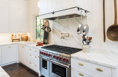 This 5,000+ square foot newly built contemporary country farmhouse was designed for enjoying the wine country with family and friends. Everything in the house is brand new and big (like 12’ ceilings throughout). The décor style is cool urban sophistication meets contemporary comfortable farmhouse – a neutral palate with bright splashes of bold colors in the native rugs, artwork, lighting fixtures and whimsical accessories.