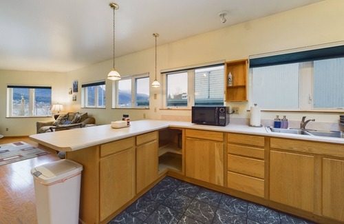 Stay in the heart of Juneau and enjoy breathtaking ocean views from this stylish 2-bedroom apartment, located directly across from the cruise ship docks. Perfect for families, couples, or business travelers, this prime spot puts you steps away from the city's best attractions. Explore the vibrant Wharf, savor meals at nearby restaurants, and walk to the Sealaska Heritage Center or the Alaska Legislature with ease.