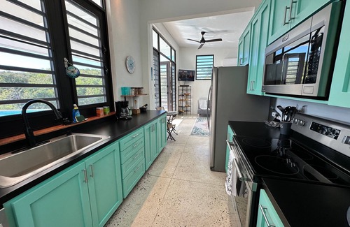 Nestled in Cabo Rojo, this delightful studio is perfect for guests seeking a cozy retreat. A power generator with automatic transfer switch for your convenience in case of a power outage. The bedroom features a comfortable king bed, while the bathroom offers a convenient shower and hair dryer. If you want peace , quiet and solitude, yet 2 minutes away from Buye beach and 3 minutes from Boqueron. This unique property is tucked into the preserve. It is next to the biking trails of Buye beach area and hiking area of Pirate Cofresi . Watch the Iguanas in the jungle trees while relaxing by the 3 to 10 foot pool. The night sky is aligned with planets and stars shining brightly above. Relaxing.