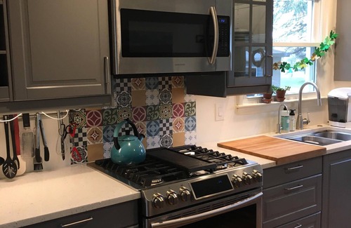 This is our home, not a rental property, so you will find all the amenities for a comfortable visit. The full kitchen is stocked with pots, pans, utensils, a blender, Cuisinart, slow cooker and everything else you need to prepare meals. The gas Weber grill in the large yard is also available. A washer and dryer, along with laundry detergent are in the basement. Guests may use the condiments, herbs and spices, and paper goods. Please help yourself to the Keurig coffee and tea provided.