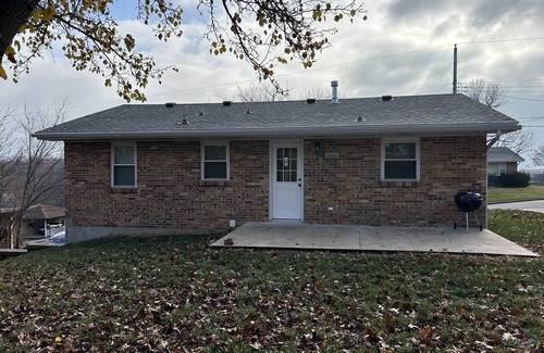 Our 3 bed, 1 bath Jefferson City home backs directly up to Oak Hills Golf Course. The living room with smart TV, fully updated eat-in kitchen, 2 bedrooms (both Queen beds), and full bath are all on the main level. Master bedroom (King bed and smart TV) and washer and dryer are downstairs.