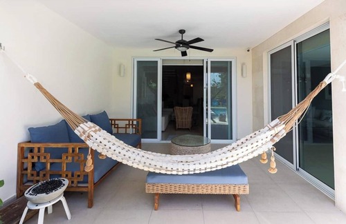 Enjoy amazing pool days with your family in this fabulous beach property with a private pool. This beautiful beach townhouse can easily accomodate 8 guests spread out over three large rooms. The beach is just a few minutes walking distance, as well as the Casamar Beach Club, and the children's Water Park.