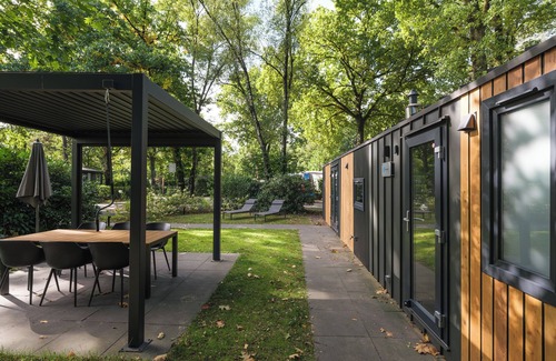 In addition to the modern interior, the Cozy Chalet offers extra comfort with air conditioning that both heats and cools, ensuring a pleasant indoor climate in every season. Outside, you can relax under the luxurious pergola, perfect for enjoying a peaceful moment in the shade or staying sheltered from a light rain shower.