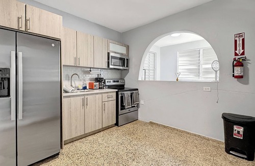 The whole group will be comfortable in this spacious and unique space. Discover Your Puerto Rican Oasis in Arecibo. Enjoy ample space for your group with 7 beds, 4 baths, a maximum capacity of 26 people. With air conditioning, a fully equipped kitchen, and a BBQ grill. With a private pool.