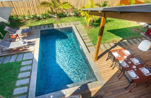 With family or friends, come and enjoy its exceptional location (near the lagoon, Saint-Gilles and the Hermitage), its swimming pool, its beautiful tropical garden and its refined decoration.