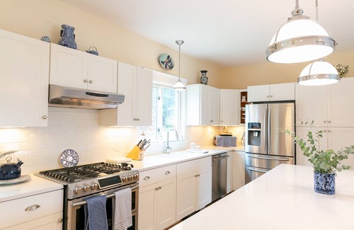 Your perfect country escape. Clean, spacious, light and airy home set in the middle of a meadow on 20 acres. Complete privacy, yet 10 minutes to downtown Great Barrington. Close to skiing at both Catamount and Butternut. There is room for everyone, with 4 bedrooms, including two master suites. The first floor features an open concept kitchen/living/dining, along with a powder room, spacious mudroom and a gorgeous newly added 4 season sun room with radiant heat. There is also a queen bedded master suite on the first floor with a walk in closet and bathroom featuring a Jacuzzi tub. The second floor has 3 additional bedrooms including a second master suite that has both a king sized bed and a twin bed, and a bathroom with a walk in shower (no tub). An additional bedroom features a full size bed, and the last bedroom has a twin over full bunk. An additional bathroom with tub completes the second floor. Luxury bamboo sheets on all beds. Both a travel crib and extra large playpen are available. The lower level bonus space gives the kids a place to play and also features a television. The very private house sits at the end of a long driveway and is charmingly situated in a park like setting, with a meadow filled with birdsong, specimen plantings, a fruit orchard, and garden (more in-season photos coming soon!) Conveniently located in Sheffield, MA, close to South Egremont, Great Barrington, Salisbury/Lakeville, CT area and all of the restaurants, skiing and cultural attractions in Berkshire County. All appliances in the home are less than 5 years old. Dogs are considered. It is our number one priority to ensure you have a truly special and relaxing stay at our property, so please let us know if you have any questions. Sorry, no events at this time.
