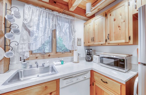 Step out on this home's deck with your morning coffee and enjoy the solitude of the surrounding forest. A dining area and full kitchen make mealtimes easy at this well-equipped home, and the fireplace will keep you cozy on chilly evenings. There's also a private washer/dryer and free WiFi for your convenience.