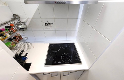 The 160cm queen size beds with 18cm mattress, the modern shower room with "Rainshower", the full kitchen with washer/dryer, dishwasher, microwave oven, fridge, Nespresso machine, juice maker, toaster, kettle, electric cooking plates and all the necessary crockery and glassware are available for you.