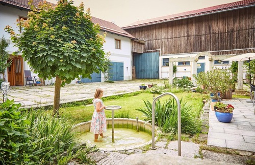 70 qm große Ferienwohnung in historischer Umgebung. Die Wohnung ist Teil eines traditionell bewirtschafteten Urlaubsbauernhofs und neu renoviert. In der Nähe liegen das hofeigene Moststüberl und ein schöner Wellnessbereich mit Saunen und einem Whirlpool. Außerdem werden Massagen angeboten. Direkt an der Unterkunft liegt außerdem der eigene Badeteich, sowie Zugänge zu den Wanderwegen. Für die kleinen Gäste ist eine "bunte Spielgarage" mit Tretfahrzeugen, ein Fußballplatz vorhanden und Schaukel sowie Kicker vorhanden. Die Ferienwohnung verfügt über 2 Schlafzimmer, eines davon mit 3 Betten, und im Wohnraum über einen Sat- TV und einen Kachelofen. Die Küche ist komplett ausgestattet unter anderem mit einem Backofen und einer Spülmaschine. Das Bad besteht aus Dusche und WC, ein Fön ist vorhanden. Von der überdachten Sonnenterrasse mit Gartenbestuhlung hat man einen wunderschönen Panoramablick. Auf Wunsch gibt es einen Brötchenservice. WLAN- Nutzung und Parkplätze sind im Preis enthalten.