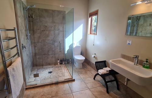Lovely garden views, work desk and tea/coffee making facilities . Fully equiped kitchen. Lounge, dinning area suited for 8people. All rooms include a modern bathroom with under-floor heating, it easy at this unique and tranquil getaway. Gated secure property with free parking. Kids friendly! Trempoline, kids bike, scooter, netball are also available. Its own trail for morning walk, fallo dears roaming around the property to enhance beauty of the Lodge. Mountains view, Ocean, beach, trails, surf spot on 3minutes drive from home.
