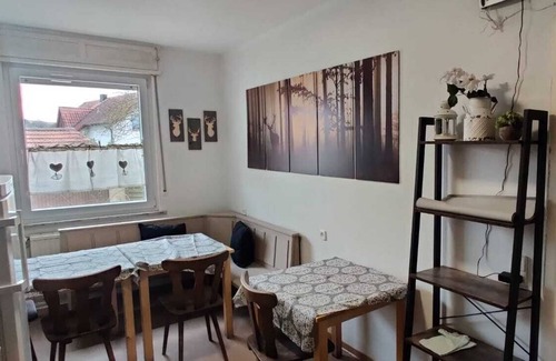 Each apartment has its own bathroom and a fully equipped kitchen in a cozy country style. Both apartments share a washing machine in the basement, an additional guest toilet in the stairwell and a barbecue area with gas grill and seating in the yard (grill from spring 2020). WiFi is available throughout the house free of charge.