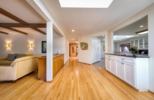 A well-distributed one story house, Forest Ridge is all about natural light and communion with nature. Custom-built in 1975 out of redwood and glass, this architectural gem includes three living areas, formal dining, casual dining, and an impeccably remodeled kitchen.