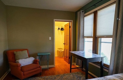 **There will be construction happening this summer in the back yard. The house is fully useable during this time and they don't work on nights and weekends, but just be aware!**This is a historical house with many of the original features inside. There are four bedrooms, three of which have queen beds and one has a futon couch. There is also a couch in the living room for additional sleeping. With a full kitchen, dining room, and living room you'll have plenty of space for relaxing and preparing meals. There is a large jacuzzi bathtub upstairs as well as a separate shower.