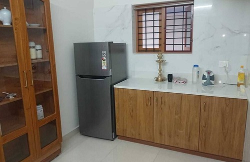 Your home away from home in Kochi with 3 bedrooms. This superb villa offers a tremendous experience for guests. With 3 queen beds, it's perfect for a group getaway or a family vacation. The adorable property boasts modern amenities like Wi-Fi, AC. Fully equipped kitchen with hobs , LPG gas, all necessary Utensils, Crookeries, Fridge, washing machine, Drinking bottled water. You'll find everything you need, from a hair dryer to an iron, ensuring a comfortable stay. Covered carparking and wide road from the main road. The 3 bathrooms are equipped with hair dryers and showers. Our place is equipped for both long or short stays to make your holiday one to remember. CCTV survalance and solar lights all around. Close proximity to Lulu mall cochin, Amirtha hospital 5 km, Infopark 7kmAster medicity 10km, Cochin international airport 18km. Quick availability to Uber taxi and major food deliver Zomato and Swiggy. Drivers room or mid room with attached bachroom available at the same compound on additional charges for long term guest
