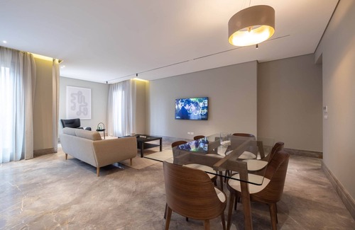 Our serviced apartment is nestled within a private compound in New Cairo, offering the perfect blend of convenience and luxury. Fully furnished and equipped with modern appliances, high-speed Wi-Fi, and 24-hour security, it ensures a comfortable and hassle-free living experience.