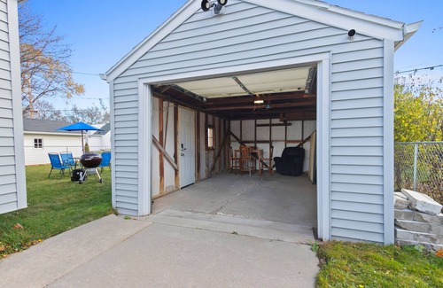 It’s has 2 bedrooms one with a queen bed in it and one bedroom with 2 twin XL beds! It has a full basement with a washer and dryer that guests can use during their stay at the house. It also has a one stall garage that has a smart garage opener that your welcome to use during your stay! (If interested in using the garage during your stay contact me for more info) The garage is nice because you won’t have to worry about scraping off your car In our crazy WI winters. Also you won’t have to worry about moving your car when our plow guy comes!