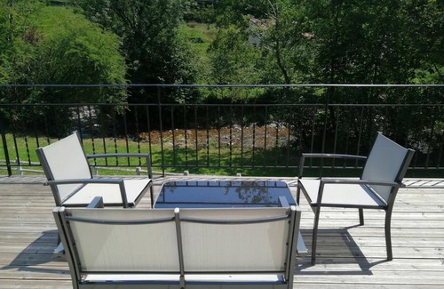 Gîte in an independent house located at the end of a small neighborhood, overlooking the Nive d'Arnéguy. Gîte completely renovated in 2016. Access via 2 steps. Equipped kitchen (microwave, ceramic hob), living room, lounge (insert fireplace). 2 bedrooms (1 140cm bed, 2 90cm beds), shower room, toilet. Consumption and electric heating by heat pump extra. Wood provided. Rental of sheets and towels. Parking Garage. Large enclosed plot of land in front of the house with garden furniture and plancha. At the back of the house, enclosed grounds with secure terrace, equipped with garden furniture and deckchairs as well as a small outdoor lounge and stone barbecue, with a view overlooking the river. Access to the banks of a fishing river (permit required) and pebble beach. St-Jean-Pied-de-Port 2 km: ramparts, swimming pool, tennis, picturesque streets.