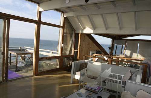 This spectacular beach house with stunning water views is located 20 feet from the edge of a grassy cliff overlooking Vineyard Sound. It was designed by the visionary architect Andrew Geller and is comfortable, convenient and remains modern in every way. The kitchen is well-equipped and the house can accommodate up to 10 people, with 4 private bedrooms, 3 bathrooms, and an upstairs sleeping alcove.