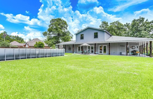 Treat the whole family to a relaxing retreat at this unique vacation rental in Gonzales. There are plenty of on-site amenities to keep everyone entertained! The 5-bedroom, 3.5-bath home has over 4,500 square feet of updated interior space with Smart TVs and plenty of room to lounge. Outside, you’ll find an aboveground pool and a wraparound porch with an electric Pit Boss grill. Ready to explore the area? Take the kids to Blue Bayou Water Park, visit Baton Rouge, or shop at Tanger Gonzales!