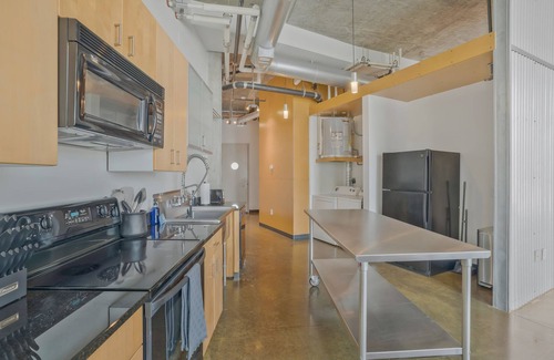 The 950 SF loft features 15 ft ceilings and huge windows that overlook the vibrant Gulch neighborhood. The loft offers two king-size beds, as well as a sleeper sofa in the living room that provides a second sleeping spot if needed. The first bedroom towards the front of the unit is a true bedroom with a door and it's own bathroom. The second bedroom is a lofted space with an opening to the living room. There is a room divider provided to offer guests sleeping in this bedroom privacy. We offer a Smart-TV with all streaming capabilities (NO cable), WIFI, and a washer and dryer in the unit!