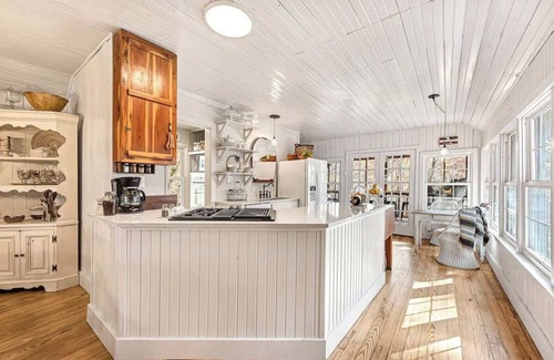 Nestled on 830 acres, but just a couple miles south of town, this completely renovated, historic cottage has all the modern amenities. It features an open floor plan that spans 40 feet from front to back upstairs, in one of the most peaceful and natural, tree top settings. It also has two covered/ screened in decks with a 16' bar perfect for enjoying the amazing scenery and the beauty of The Natural State. It's the perfect place for your next family gathering, or just to get away and relax.