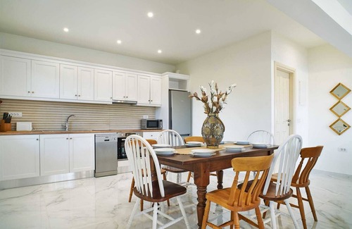 Hannah Villa Stalos: spacious, quiet villa w/sea and mountain view has 4 Bedrooms , 3 Bathrooms, and max occupancy of 10 people. The minimum rental for this property is 1 nights, but this can change depending on the season you plan on staying. Previous guests have given good rated it, and VRBO labeled it a top-rated Villa because of the excellent services rendered by the owner or manager of this Villa, and has consistently provided great experiences for their guests. Most families or guests that use it recommend it to their friends and some of them are repeat guests. Villa has a friendly neighborhood, and the Stalos has interesting places to visit. If you want to learn more about the Villa in Stalos, such as places to visit and things to do nearby, you can check below to learn more.