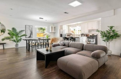 Welcome to your luxe CB2-inspired oasis! Perfect for comfort and style. Plush beds, high-end furnishings, and a fully-equipped kitchen for delicious meals. Relax in the jacuzzi or take a dip in the heated pool!
