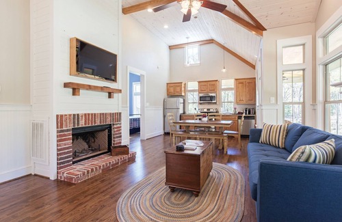 The two bedroom Victorian Heth House is the perfect location to get ready for your big wedding day or have room to roam while at Bearpen. Named after the owner’s family, one quickly appreciates the simplicities of yesteryear. The spacious cabin features a charming great room, wrap around porch and all the gingerbread details one would expect in a vintage 20th century home.