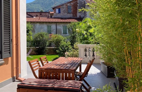 The Casa Elisa is located in the historic center of Porto Valtravaglia within 3 minutes walking of Lago Maggiore. The house consists of three separate apartments which can be rented separately or together. This apartment is fully equipped and has a great view of the village, mountains, and part of the lake. The house has been refurbished in 2021, with high-standard equipment and ecological heating and cooling. There is a private parking garage, a huge terrace, and a beautiful, quiet garden.