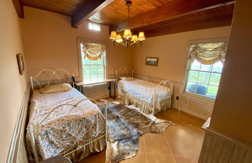 This family compound consists of a comfy 3 bedroom 2 bathroom home with a loft and fully stocked kitchen. There are 20+ mile views from every portion of the several acre main activity area. The back porch is excellent for relaxing, wildlife watching and enjoying the view. There's a cozy 1 bedroom and 1 bath casita with a fold out sleeper sofa in the living room. There is also an air conditioned man cave/cook shed we use for making sausage, watching TV and hanging out. Excellent internet connection via wifi tower on site. Traeger and Webber grills will meet your grilling needs. There are chickens and a garden to entertain and amuse. Two ponds offer excellent fishing and swimming but the depth will vary based on local weather trends. As part of this rental you are able to enjoy an off site private 3.5 acre deep water property with 515 feet of the Blanco river that is walking distance to the CBD. There is a total of 3 Roku enabled TV's.