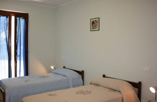 Ground floor apartment with independent entrance from the porch equipped with table and chairs. Living-dining room with kitchen corner and small double sofa-bed, double bedroom, twin bedroom, two bathrooms with shower.