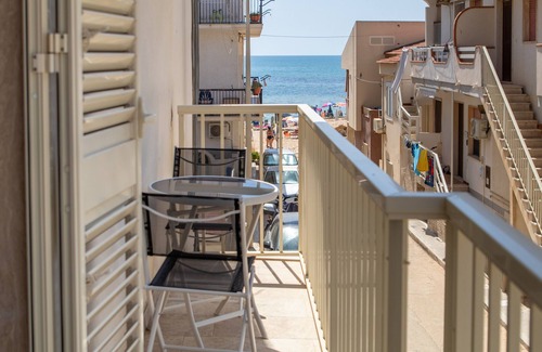 The apartment also features a private balcony. The property is less than 30 metres from Casuzze beach, and public transport connections are within easy walking distance. Recommended destinations include Punta Secca (3 km), Marina di Ragusa (4 km), Donnalucata and Castello di Donnafugata (14 km), Scicli (20 km), Ragusa Ibla (30 km), and Modica (37 km). The nearest airport is Comiso, 30 km from the property.