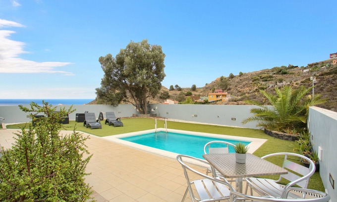 The holiday home "Casa Alsa" is located in La Guancha, on the beautiful volcanic island of Tenerife, and offers stunning views of Mount Teide and an attractive outdoor area. It consists of a living room with a 1.35 m bed and a three-seater sofa, a well-equipped kitchen, one bedroom with a double bed, and a bathroom, so it can accommodate up to 4 people. Additional amenities include Wi-Fi, fans, cable TV, and a washing machine. This property is ideal for families with children, as it features an outdoor area for their enjoyment, as well as a cot and highchair available upon request. The excellent outdoor area includes a garden with a private pool, outdoor shower, and sun loungers for you to relax or cool off on warm days. There is also a charcoal or wood barbecue for you to prepare meals and enjoy them outdoors. In the centre of La Guancha, just 7 minutes by car (3.8 km), you will find shops, restaurants, bars, and cafés. The nearest beaches, Playa de Santo Domingo and Playa de las Gaviotas, are 2.6 km away (6 minutes by car), ideal for sunbathing or walking along the shore. You can also visit Teide National Park, 53.2 km away (1 hour by car), to discover the island's nature and volcanic landscapes.