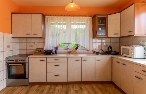 Apartment Lanita located next to woods and vineyard is a calm escape for guests to relax in a very homey atmosphere with the option to hold a BBQ picnic and with prior inquiry have a wine degustation tur in the lovely wine cellar With two bedrooms and additional beds available in the living room the apartment can accomodate up to 8 guests. It has a private bathroom with a walk in shower, toilet, sink with mirror and all basic toiletries and towels provided. The formerly mentioned living room is spacious with a single bed placed at the side and the sofa doubling as an additional double bed. A TV is available to guests as well as books and toys for kids. In the ground floor the well equipped kitchen is located where guests can prepare their own meals as an oven, stove, toaster, microwave and kitchen utensils are available. From the kitchen guests can access the balcony. Adjacent to the kitchen is a dining area,