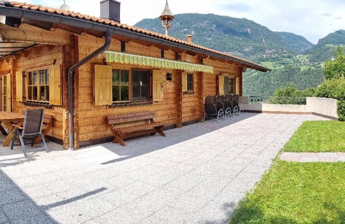 Large sun terrace with magnificent panoramic views of the surrounding mountains and sunbathing lawn, covered terrace (so that even a small rain shower does not matter), awning, charcoal barbecue and garden furniture.