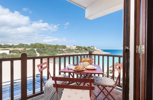 Immerse yourself in a unique experience by the sea in this 6-person vacation apartment, fully equipped and recently renovated in 2025. The accommodation offers stunning direct views of the Mediterranean Sea and Cala Marçal Beach, providing a relaxing and sophisticated setting for your stay in Mallorca.
