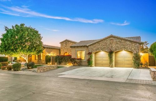 This highly upgraded 6-bedroom retreat (including a casita) boasts spacious en-suite bathrooms. Lightning-fast internet (700-1000mbps) keeps you connected. The living room features a 65” Samsung Smart TV, backyard features a 158-inch TV and outdoor surround sound system, for a total of 10 TVs throughout the home.