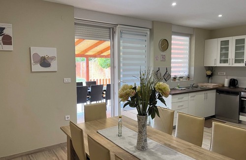 Just five minutes from the city centre, a very cozy and quiet location to enjoy your stay in Osijek or drive to other locations in Slavonija and Baranja.Large luxurious house with all the facilities required for a long stay with the family.The house is in the vicinity of supermarkets and bakeries. Floor heating for your winter stay and airconditions in all three bedroom for the hot summer days. You can cook your own meals in the fully equipped kitchen, have a bbq in the backyard or enjoy the delicious food in any of the restaurants around.