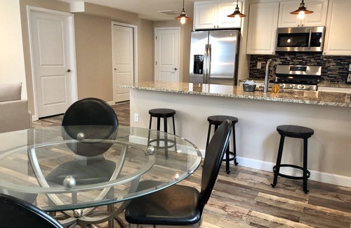 Here to work? The unit also has a wireless printer. Larger capacity black and white Laser printer available on request. Cubpoards will be stocked with basic pantry items in the event you are too tired to go out or shop for food when you arrive. Fully functioning kitchen with gas stove. Coffee, tea, french press and keurig provided. All cooking accessories as well. Laundry room has detergent, bleach, iron and ironing board. Netflix, Amazon video, and Spotify accounts all logged in to on the smart tv. Anything missing? Just ask and we will provide. The shared back yard is peaceful. It boasts a large pond with fish and fountain, huge firepit, lounge chairs and BBQ grill. Want the space to yourself, feel free to request to reserve it or come join us for a glass of wine or coffee by the pond or firepit. It's the perfect place to relax!