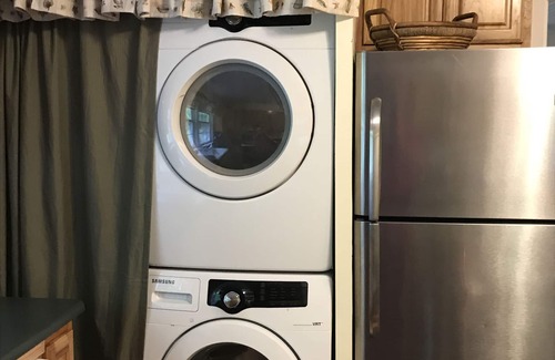 Brett's Falling Waters Cabin is ideal for singles, couples or small families who want to enjoy semi-rustic comfort in a mountain setting not too far from hiking trails, scenic drives, restaurants and the amenities of Black Mountain and downtown Asheville. Two bedrooms with Queen size beds and one bathroom with shower, our cabin can accommodate up to 4 guests (including children) and 2 pets. Nest controlled central air conditioning/heating and a cozy gas log firebox lends ambiance and warmth to the Living Room with Smart TV and free WIFI. Enjoy the eat-in kitchen with gas stove, microwave, dishwasher and full-size refrigerator, clothes washer and dryer. The driveway is gravel, level, and accessible by any vehicle. 4-wheel drive is not needed.