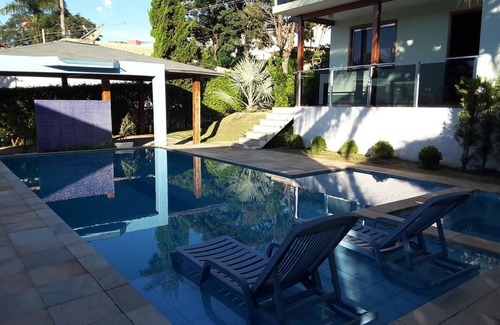 The property has 1000 m2 of area, 487 m2 of construction. The suites have ample space and balcony, full kitchen with all utensils, pantry, TV room, star room, toilet, laundry, covered garage, swimming pool, sauna, barbecue, Deck and a beautiful garden. One of the suites is equipped with a jacuzzi (usage fee) We have a speedboat that accommodates 12 people for a ride on the lake of Furnas (separate service). I await your reservation.