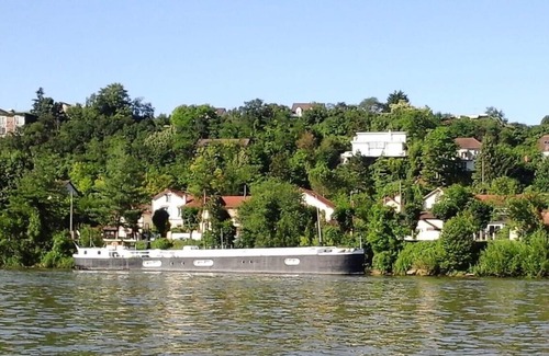 It is located on the banks of the Seine and consists of a living room with a sofa bed, a bedroom (140 cm bed), a kitchen with dining area, a covered terrace and a garden.