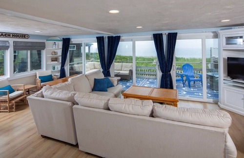 In less than a 15 second walk you are on the private beach! Our spacious ranch-style cottage is in a fantastic quiet residential neighborhood and can comfortably accommodate up to 8 people with parking for up to six cars. Outside, the large sunny Riverside Deck has unobstructed views of the South River and has a patio table with eight chairs which is great for outside dining, two lounge chairs for sunning and a gas propane grill. The over-sized Oceanside Deck with unimpeded oceanfront views has plenty of outdoor furniture for relaxing and catching a nice ocean breeze! After enjoying a day at the beach, use the outside shower with hot and cold water under the Riverside Deck to rinse off. There is also plenty of room under this deck to store your beach chairs, coolers, kayak, surfboard, bikes, fishing gear, etc.