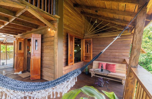 We’re a secluded, hand built, solar powered, wood cabin, surrounded by nearby waterfalls, rivers, gorges and sulphur springs. Rest in our cozy, attic bedroom with king bed overlooking winding river and vast valley. Rejuvinate in our serene bathtub overlooking lush greenery. Relax on our open patio amongst dancing trees. Escape to this ideal island get-away!